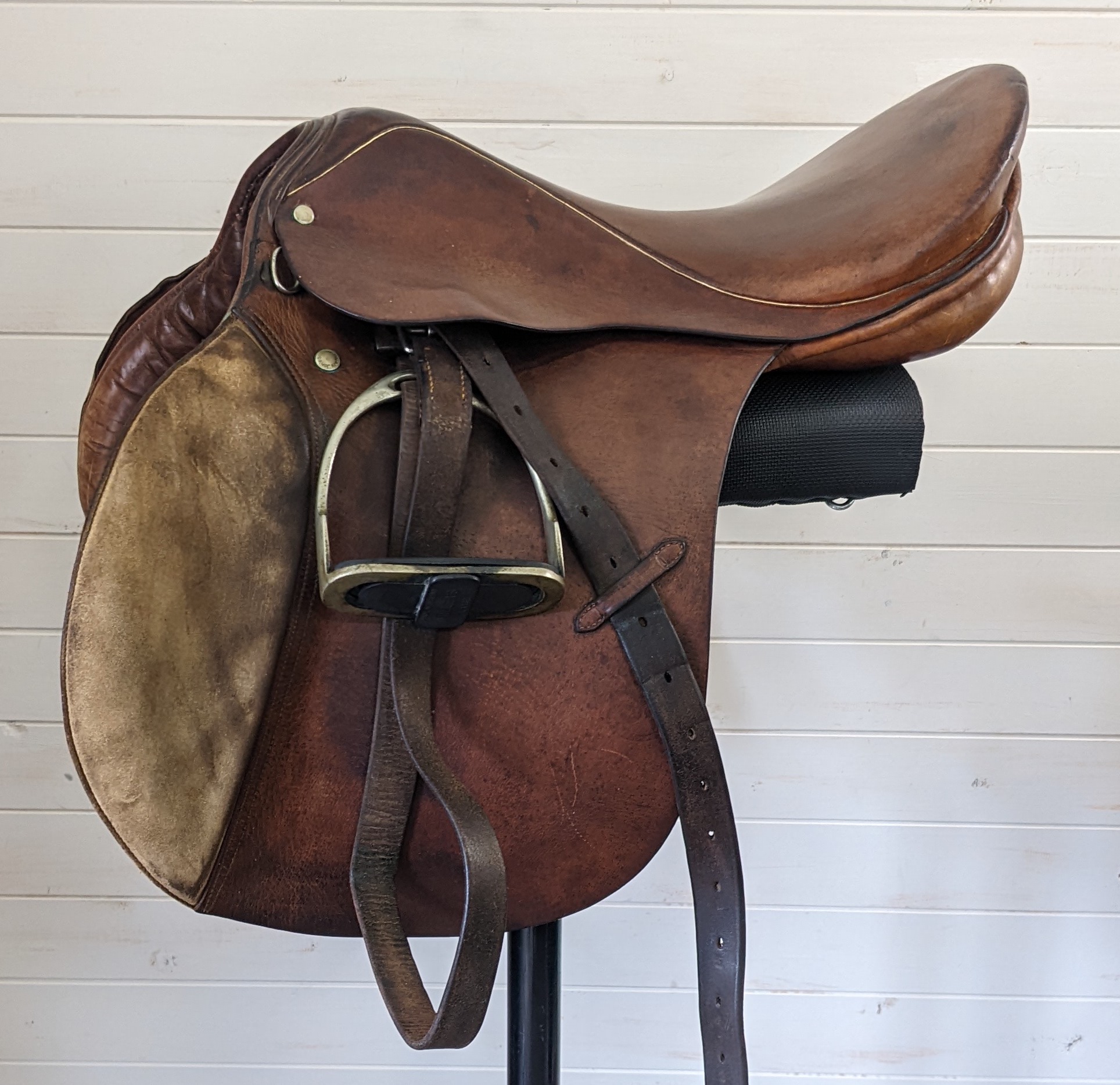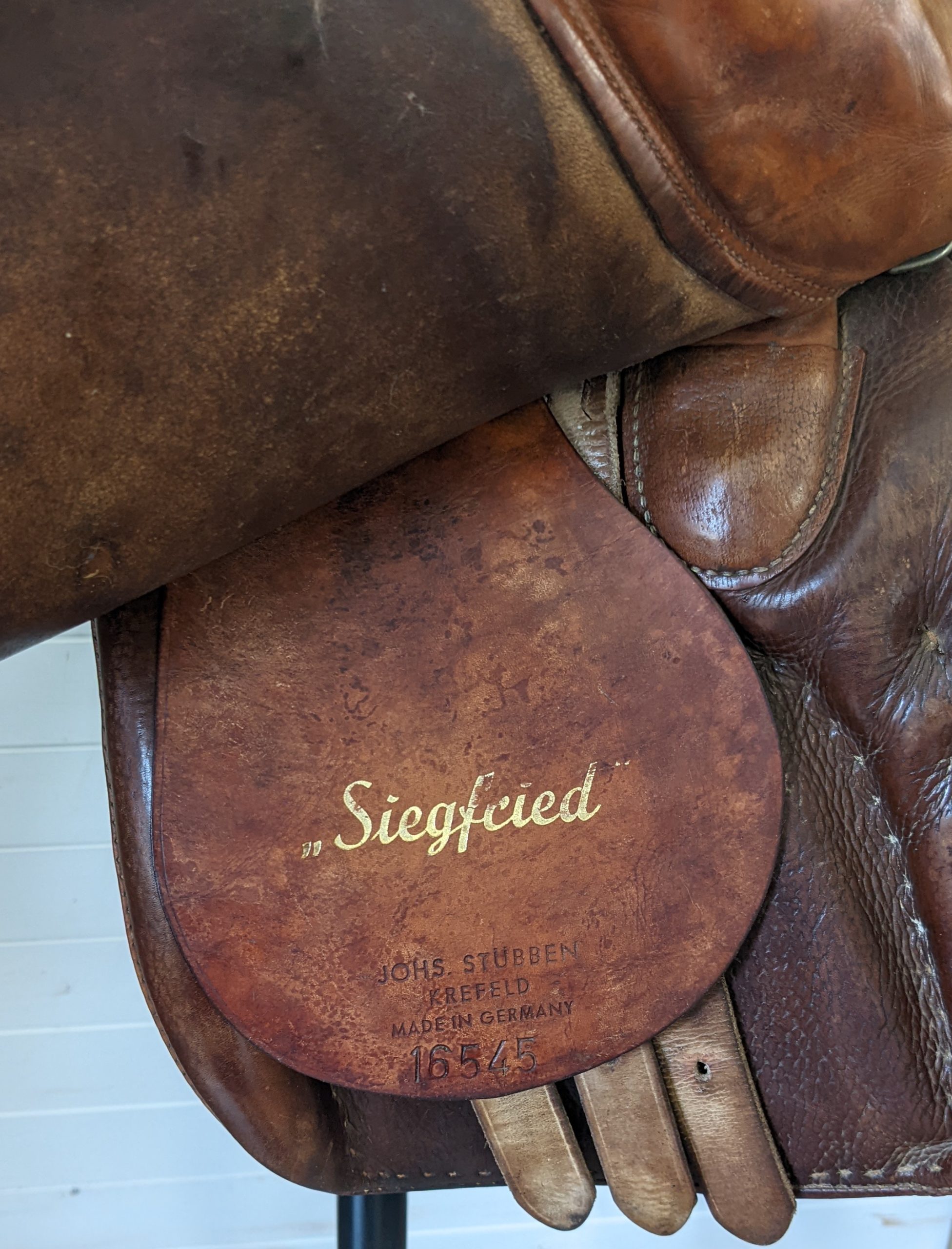 This is a used Stubben Siegfield saddle. In good shape with lots of riding left in this English Saddle. Leather and billets in good shape as well. Includes leather, irons, saddle cover and leather girth.
